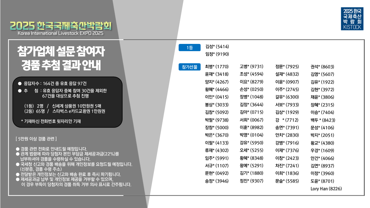 ![[KISTOCK 2025] 참가업체 설문참여자 경품추첨 결과 안내(25-11).PNG](/smarteditor/upload/20251127120525655198217.png)