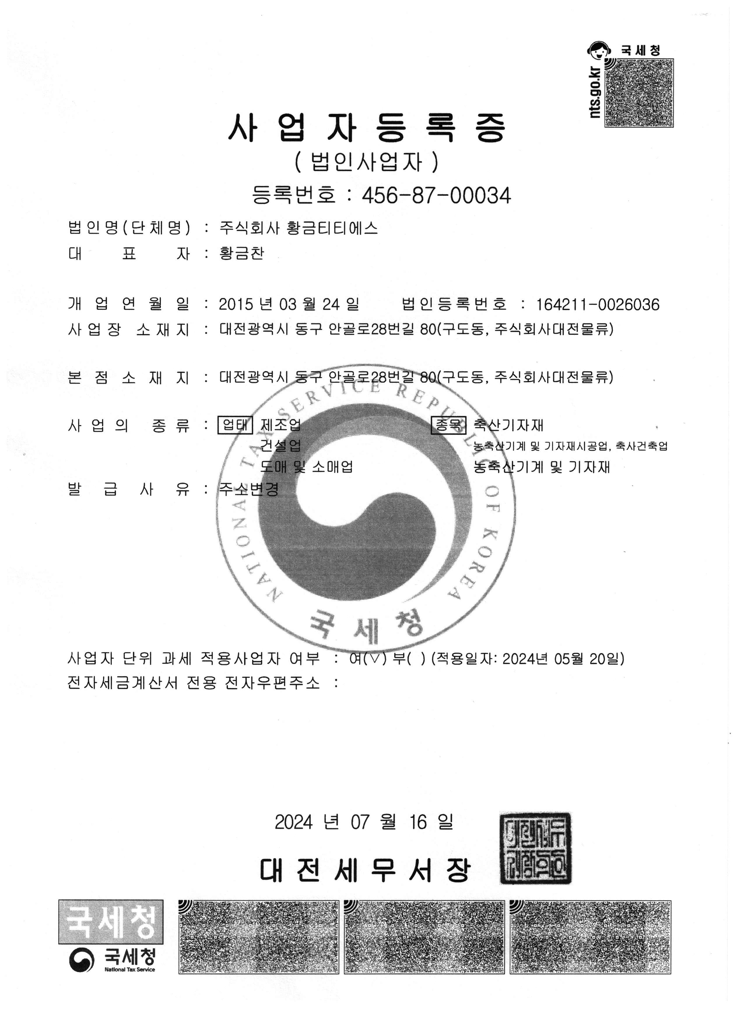 (주)황금티티에스에 대하여 소개드립니다.