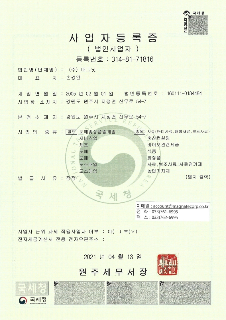 ㈜매그닛은 동물건강 기능성 제품을 수입 · 유통하는 업체입니다.