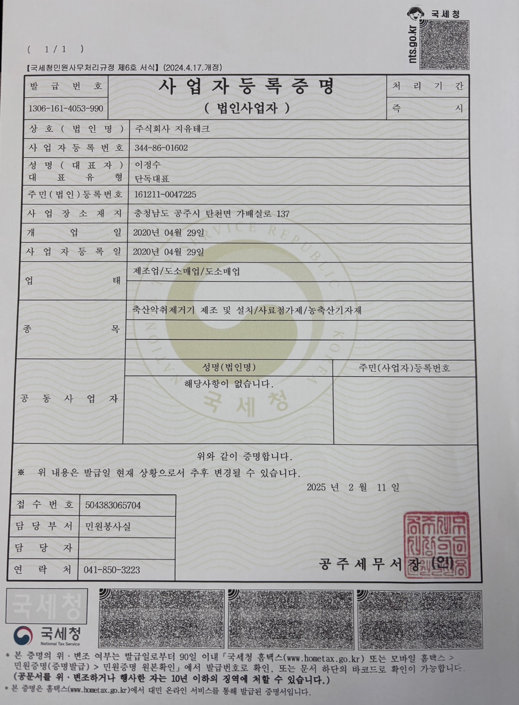 충남 공주시 탄천면 가배실로 137 주식회사 지유테크(우:32612)